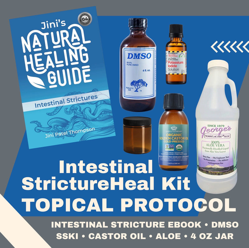 In the eBook, Jini Patel Thompson presents her experimental protocol using both a topical and oral combination of the following substances (in specific amounts, timing, and delivery methods) to actually soften and dissolve the scar tissue of the stricture(s) that is blocking or narrowing your intestine: